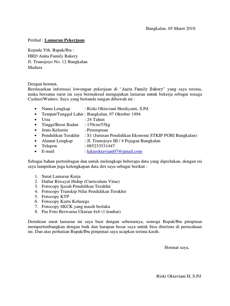 | Tanggal pembuatan Lamaran Kerja Qq: Maret 2017 |